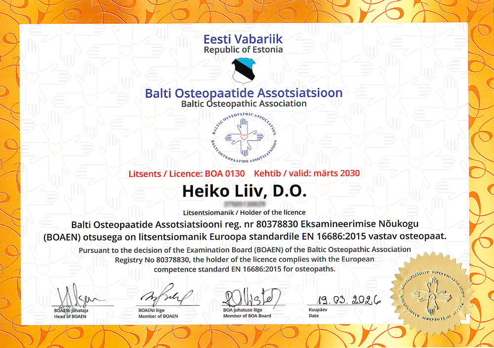 Õrnade manuaalsete tehnikatega aitab osteopaat taastada elundite loomuliku liikuvuse ja tasakaalu, toetades seeläbi kogu keha funktsioneerimist.